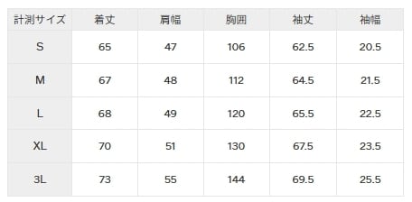 サイズチャートに記載のサイズは実寸となります。