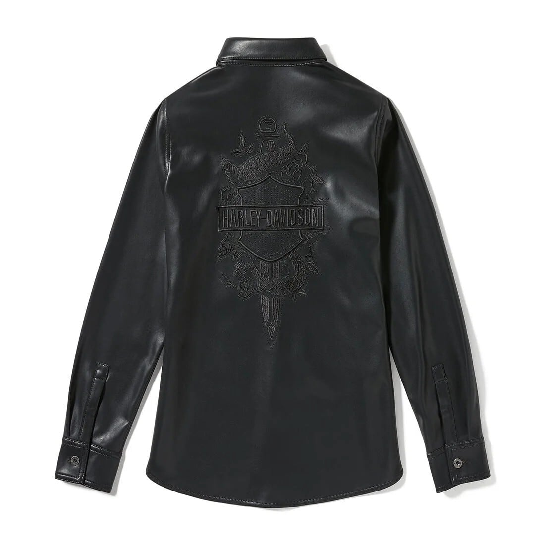 【Lady's】メタリックダガーフェイクレザーシャツ (ハーレーブラック)/97019-25VW
